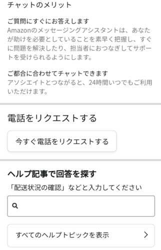 お問い合わせ方法を探してみると、Amazonに直接電話をかけて問い合わせができると知りました。