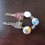 くるみボタンで、アクセサリー風のキーホルダーを作ってみました。 くるみボタンもアクセサリーも、ダイソーで購入して、ペンチ等を使わずに、短時間でできあがりました。 とても簡単にできるので、作り方をご紹介します。