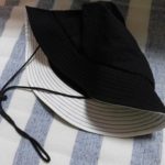 主人が新しい帽子を買いましたが… 自転車に乗っている時、飛ばされたので困った、と言っていました。 帽子が飛ばされたり、落ちないようにするために、簡単に紐とコードストッパーを取り付けました。