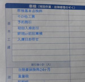 私の車は、車検が来年の2月なので、概算見積書もいただきました。