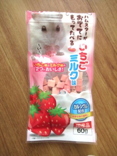 今回はおやつとして「ハムスターがおててにもってたべる いちごミルク」を買ってみました。